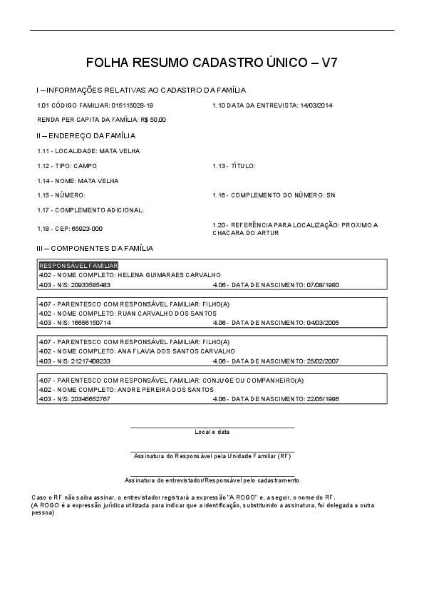Os/As participantes do CadÚnico devem apresentar a folha resumo que pode ser emitida através do endereço eletrônico: https://meucadunico.cidadania.gov.br/meu_cadunico/index.php